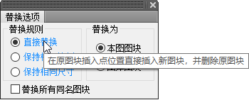 3)改进【图块替换】命令,增加一种在保持图块基点不变的情况下,直接用新图块置换旧图块的替换方式;