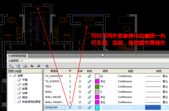 ●图层工具中提供外参图层管理、打开图层、解冻图层、解锁图层、合并图层、图元改层等功能;关闭图层和冻结图层支持操作外部参照及块参照中的图层;
