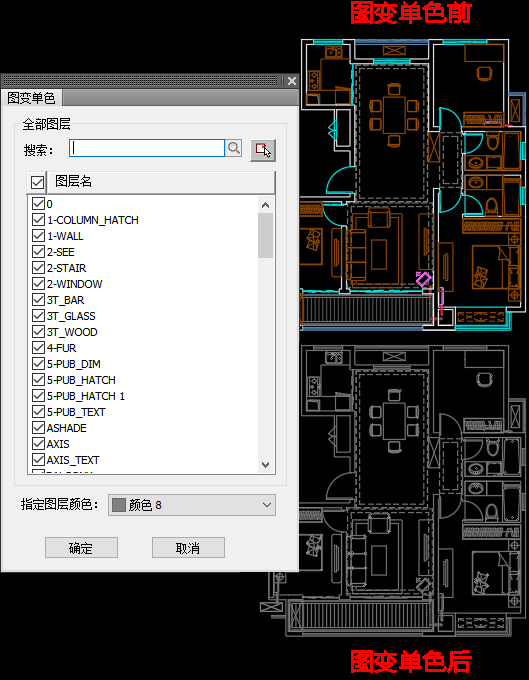 9)新增【图元改色】命令,用于批量修改选中对象的颜色;