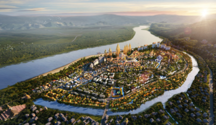 本项目位于云南景洪市,紧邻国际河流澜沧江,是融创的文旅开发项目。项目用地北至澜沧江,与傣族园景区和楠景新城项目隔江相望。东、西、南均被古河道包围,形成扇形岛状用地。净用地面积约104公顷,容积率1.0。项目站位国际化,利用景洪市对东南亚旅游板块的南大门位置,打造江心岛为“彩虹国度——以水相连、多元交融的傣泰文明之国”,旨在体现傣泰文明中中国的龙头位置,同时体现水城风情和国际化特色。项目要求既具有景区核心吸引力,又可控制成本满足产品销售。因此,规划和建筑设计采取“社区+景区”方式,以重要特色节点串联大片社区,成本差异化控制,实现适用、经济、绿色、美观的要求。